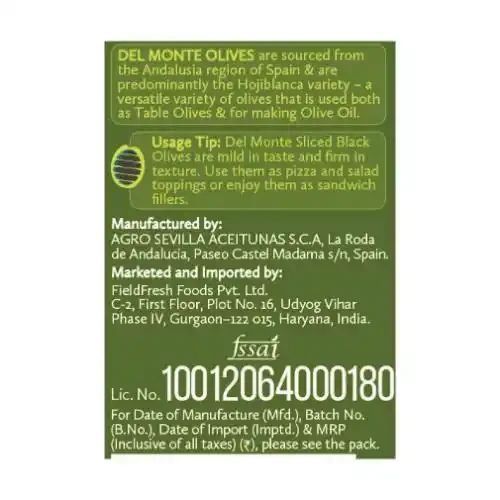 DEL MONTE SLICED BLACK OLIVES 450 G