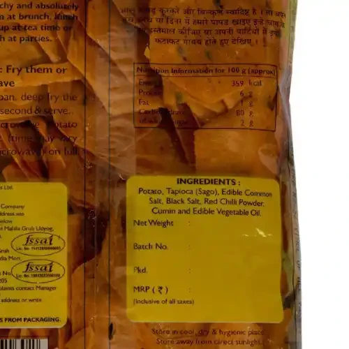 MOTHERS RECIPE AALOO PAPAD 70 G