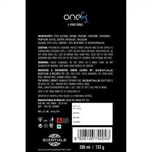 ONE8 BY VIRAT KOHLI PERFUME BODY SPRAY - AQUA LONG LASTING FR 200 ML